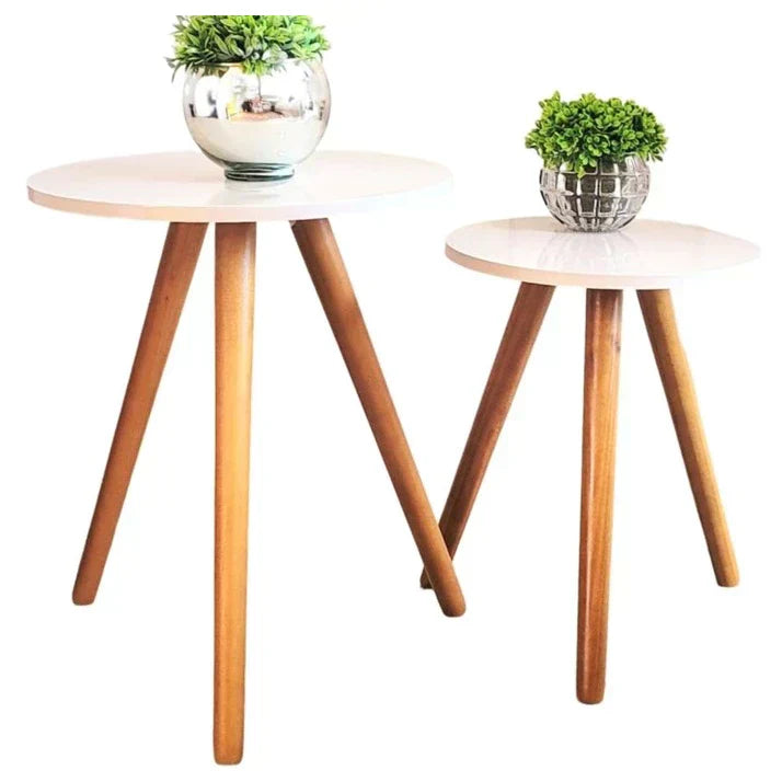 Adicione estilo e funcionalidade à sua sala com este conjunto de mesas laterais redondas. Com design compacto e moderno, elas são perfeitas para otimizar espaços e complementar a decoração.